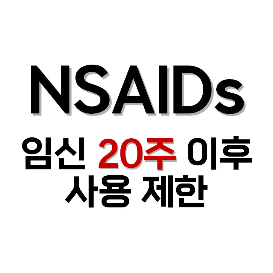 NSAIDs는 기존에도 식약처 기준 임신 28주 이후, FDA 기준 임신 30주 이후부터는 사용이 제한되어 있었습니다. 그러나 최근 연구에 따르면 임신 20주 전후에 NSAIDs를 복용하는 경우에도 태아에서 드물지만 심각한 신장 문제 등이 발생할 수 있음이 보고되어 사용이 제한됩니다.(임신 20주 경 이후 태아의 신장은 대부분의 양수를 생성하기 때문에 신장 문제는 양수량 감소를 초래할 수 있습니다.)