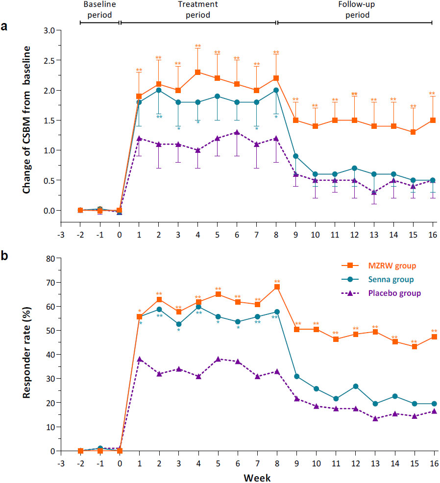 Zhong LLD, Cheng CW, Kun W, Dai L, Hu DD, Ning ZW, Xiao HT, Lin CY, Zhao L, Huang T, Tian K, Chan KH, Lam TW, Chen XR, Wong CT, Li M, Lu AP, Wu JCY, Bian ZX. Efficacy of MaZiRenWan, a Chinese Herbal Medicine, in Patients With Functional Constipation in a Randomized Controlled Trial. Clin Gastroenterol Hepatol. 2019;17(7):1303-10. doi: 10.1016/j.cgh.2018.04.005.